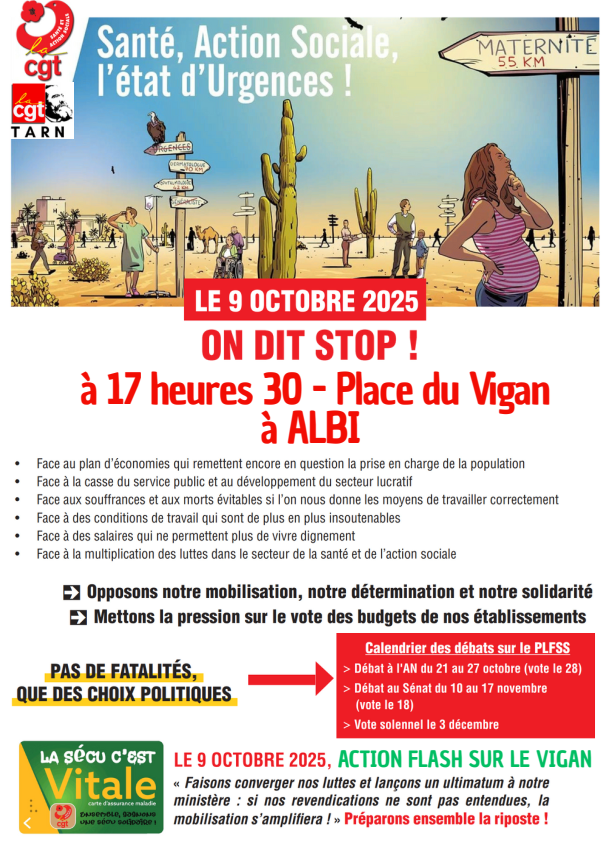 La Santé-Action Sociale, les Organismes sociaux, avec l’Union Départementale CGT du Tarn, organisent une ACTION FLASH et VISUELLE