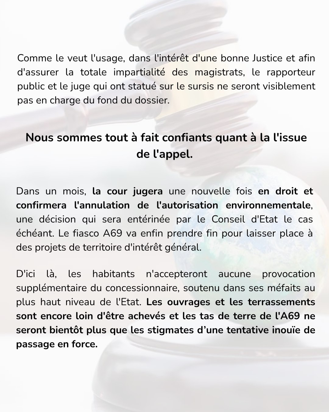Le droit environnemental sera à nouveau appliqué pour mettre fin au fiasco A69. Il est urgent que notre terre de cocagne reprenne vie, et que nos nappes et cours d’eau soient remis en état.