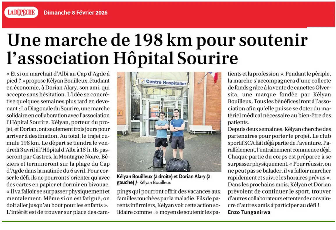 Une initiative à encourager. . . . 10 février 2026 par admin Une initiative à encourager, tant les associations ont un rôle à jouer dans l’accompagnement des malades de nos établissements de soins. Une foule nombreuse pour les accompagner le 3 avril 2026 serait la bienvenue. Follow